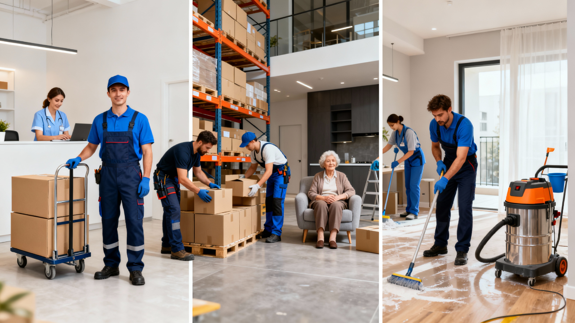 Empresa especializada na intermediação de mão de obra e serviços temporários, fornecendo motoristas, tarefeiros, ajudantes de armazém, equipas de limpeza pós-obra, higienização de apartamentos para entrega, cuidadores de idosos e outros profissionais de apoio.